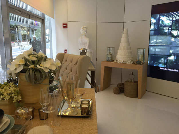 La primera exhibición que se presentará en el storefront, titulada Destination Weddings, está dedicada a mercadear la Isla como destino turístico para la celebración de bodas. Ingrid Rivera Rocafort, directora de la Compañía de Turismo de Puerto Rico, detalló que esta primera exhibición contó con la colaboración de talentosos planificadores de bodas, decoradores, diseñadores de moda y confeccionadores de repostería fina.