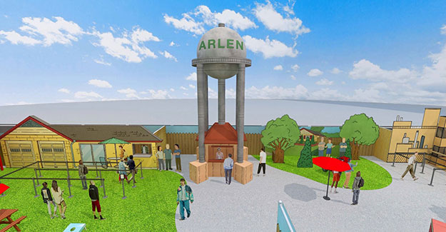 Quench your thirst with a crisp can of Alamo water under the Arlen water tower. Not only does the water tower serve as a beacon of Arlen, Texas – it will also be a rehydration point for attendees. Guests will receive cold-canned water in Alamo branded aluminum cans. You can choose to drink it to quench your thirst or take it home as a souvenir.