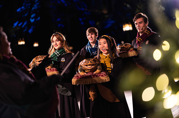 Across the park, “Christmas in The Wizarding World of Harry Potter” enchants guests with twinkling lights, garlands, and the joyful harmonies of the Frog Choir. As day turns to night, “The Magic of Christmas at Hogwarts™ Castle” brings the wizarding world to life with an awe-inspiring light projection show set to music from the Harry Potter films.